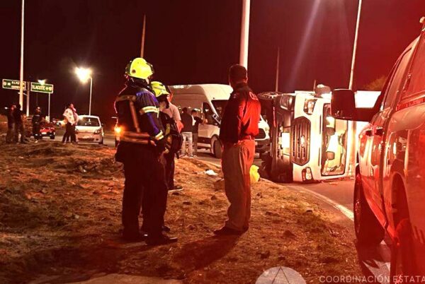 De los ocupantes de los vehículos involucrados en el percance múltiple, solo el acompañante del conductor de la camioneta volcada requirió atención, por fortuna descartándose lesiones de consideración.