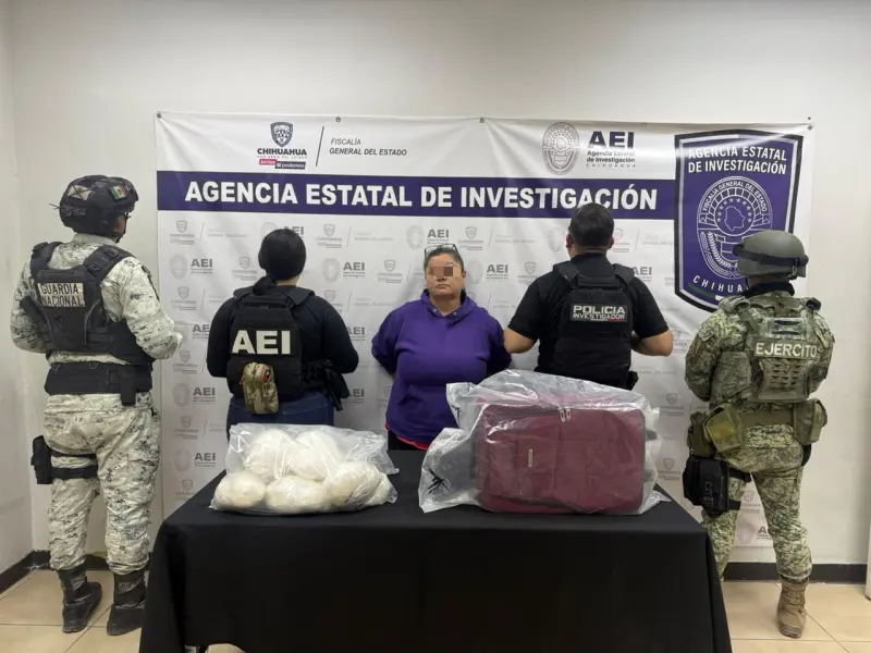 CHIHUAHUA, Chih., 15 de abril del 2026.- Como resultado de las acciones conjuntas y el trabajo coordinado entre la Agencia Estatal de Investigación, el Ejército Mexicano y la Guardia Nacional, este martes fue detenida en flagrancia por delitos contra la salud, una mujer que se identificó como Juana Araceli R. C.