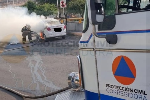 La persona que conducía alcanzó a orillar del lado derecho el auto y descender para ponerse a salvo, para entonces ya las llamas comenzaban a aparecer para irse extendiendo por la parte delantera.