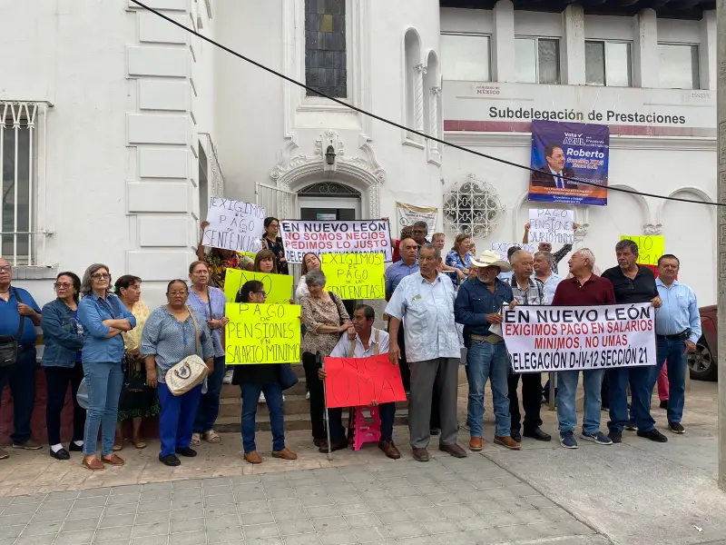 MONTERREY, NL., 16 de abril de 2026.- Por segunda ocasión en menos de un mes, maestros jubilados afiliados al ISSSTE se manifestaron en las afueras de la Subdelegación de Prestaciones para exigir el pago de adeudos en sus pensiones y solicitar una reunión con la subdelegada, Ximena Jiménez.