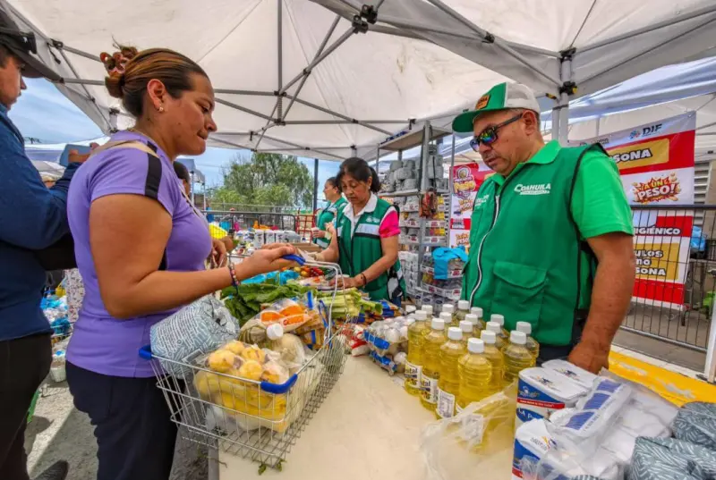 RAMOS ARIZPE, COAH.— El alcalde de Ramos Arizpe, Tomás Gutiérrez Merino encabezó una jornada del programa “Mercadito de a Peso”, en la que se entregaron más de mil 600 paquetes de productos básicos a familias del municipio.