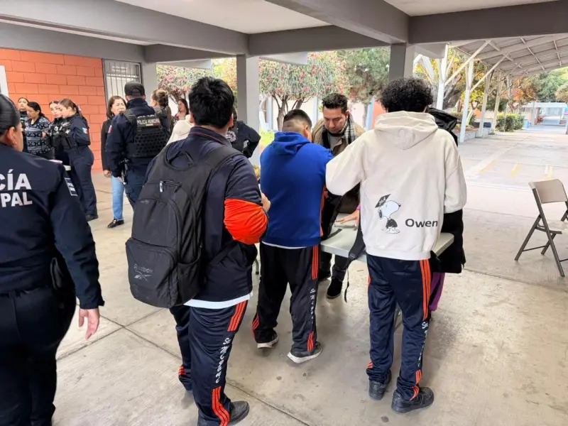 Estas acciones se llevaron a cabo en conjunto con autoridades educativas, con el objetivo de reforzar las condiciones de seguridad dentro de la escuela y en sus alrededores. Foto: CortesíaAsimismo, señaló que estas medidas forman parte de una estrategia integral de prevención, enfocada en inhibir conductas de riesgo, evitar la introducción de objetos prohibidos y generar entornos escolares más seguros, además de fomentar la cultura de la legalidad y la corresponsabilidad social.
