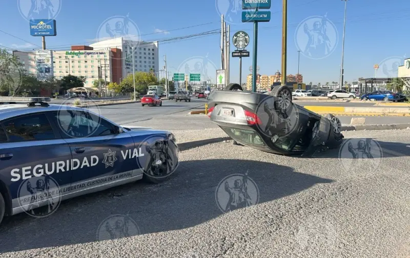 Por conducir a exceso de velocidad, una mujer perdió el control de su automóvil, pegó contra el cordón del camellón central y luego se volcó, en un accidente que ocurrió sobre el Paseo de la Victoria, frente a la sede consular de Estados Unidos.
