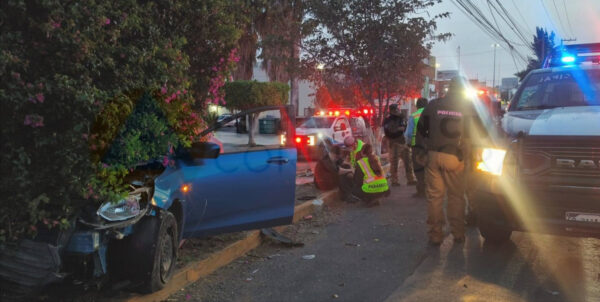 Fue a la altura de la colonia Pueblo Nuevo donde se dio la colisión entre al menos dos vehículos, uno de los cuales terminó volcado sobre unos de sus lados y el otro sobre el camellón divisor, donde habría impactado los árboles.
