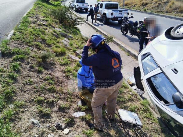De acuerdo con la versión de la mujer, perdió el control de su auto al descender de la referida vialidad, en dirección a la avenida 5 de Febrero, donde quedó con los neumáticos hacia arriba y en carril opuesto, dentro del camellón divisor.