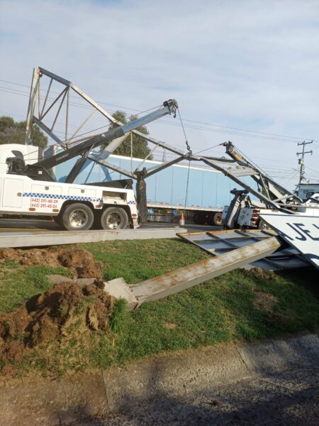 De acuerdo con los primeros reportes, un tráiler impactó contra el megaletrero de “Bienvenido a Querétaro”, el cual fue derribado tras la fuerza del choque.