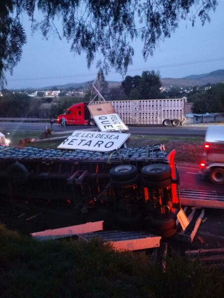El accidente, registrado en los límites de esta entidad y Guanajuato, provocó el cierre total de la circulación y severo caos vial