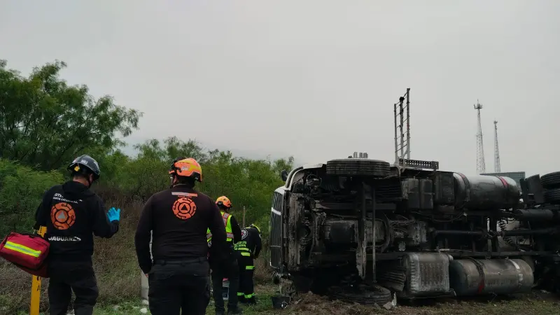 El incidente ocurrió alrededor de las 15:24 horas, cuando un tractocamión salió del camino y terminó fuera de la carpeta asfáltica en el municipio de García, de acuerdo con Protección Civil de Nuevo León.