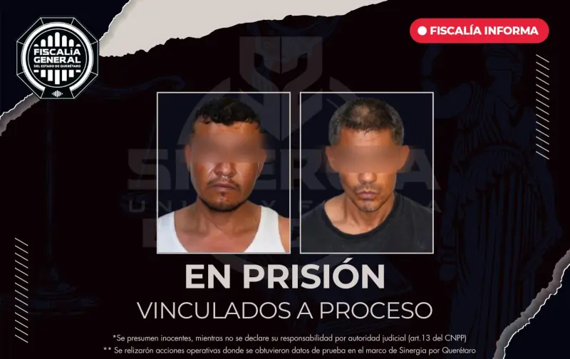 La Fiscalía General del Estado de Querétaro (FGEQ) obtuvo la vinculación a proceso de César “N”, alias “El Chicharo”, e Inocencio “N”, alias “El Chin Chin”, por su probable autoria en diversos delitos, tras hechos ocurridos en el municipio de Jalpan de Serra.
