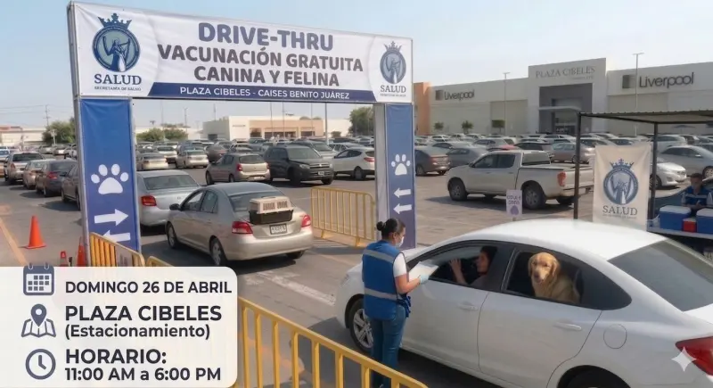 Irapuato, Gto., 23 de abril de 2026.- Personal del Caises Benito Juárez Irapuato Centro de Salud instalará un módulo Auto Vacuna o Drive-Thru en el estacionamiento de Plaza Cibeles para aplicar la vacuna antirrábica a perros y gatos.