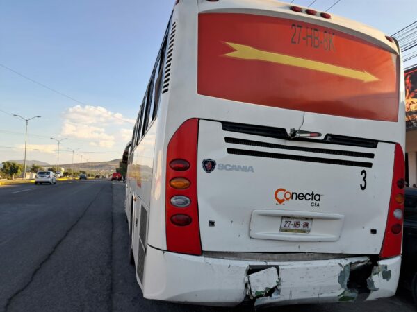 Testigos señalaron que el vehículo particular circulaba a exceso de velocidad y al pasar un reductor de velocidad perdió el control y se impactó en la parte posterior del autobús.