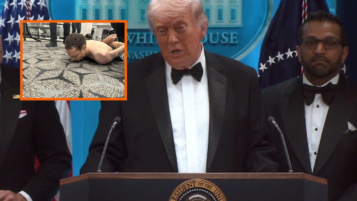 En la sala de conferencias de la Casa Blanca, se presentó el presidente Donald Trump, junto con el vicepresidente JD Vance, el director del FBI Kash Patel, el fiscal general Todd Blanche y el secretario de Seguridad Nacional Markwayne Mullin.
