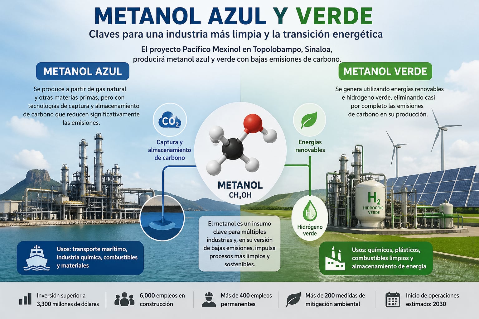 La construcción de la mayor planta de metanol de ultra bajo carbono del mundo ya está en marcha en Sinaloa, en un proyecto que contempla una inversión superior a los 3,300 millones de dólares y que busca posicionar a México como uno de los actores clave en la transición energética y la industria química sostenible de América del Norte.