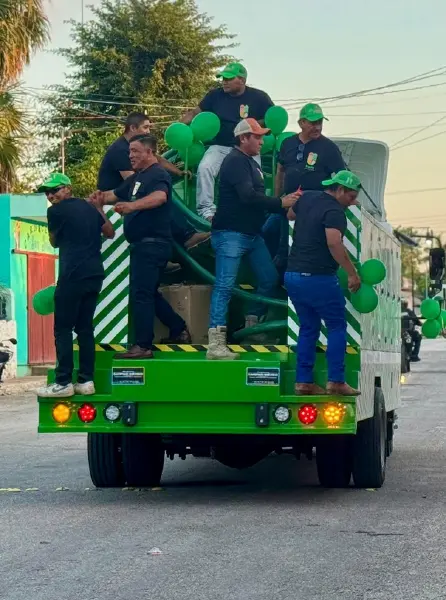 Durante la caravana, personal del Ayuntamiento acompañó el recorrido y saludó a familias que se congregaron en calles y banquetas para observar el paso de las unidades. Niñas y niños recibieron dulces en un ambiente festivo.
