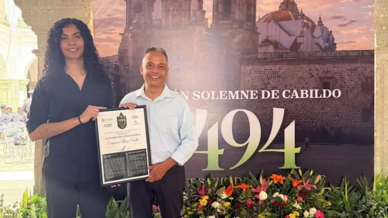 OAXACA, Oax. 27 de abril de 2026.- El Municipio de Oaxaca de Juárez entregó un reconocimiento póstumo al compositor Álvaro Carrillo, como parte de las actividades por el 494 aniversario de la fundación de la ciudad.