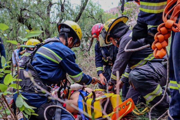 Tras identificar la zona donde se encontraba la persona, realizaron los trabajos de rescate de ángulo, así como el aseguramiento de la persona para su extracción segura y posterior traslado al área de paramédicos.