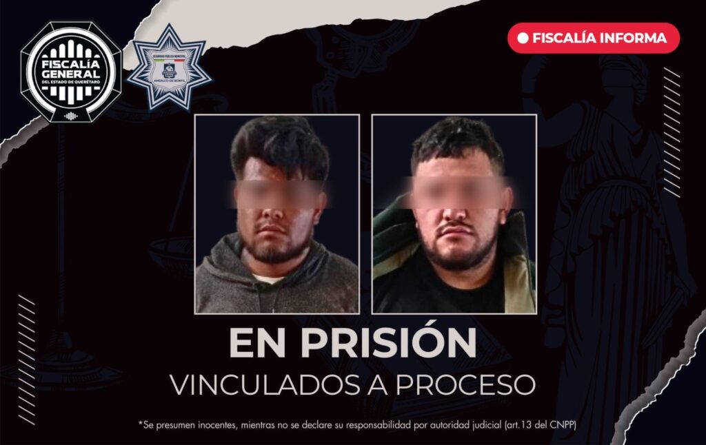 La Fiscalía General del Estado de Querétaro obtuvo la vinculación a proceso y prisión preventiva justificada en contra de José “N” y Francisco “N”, por el delito de robo calificado, tras hechos ocurridos en el municipio de Amealco de Bonfil.